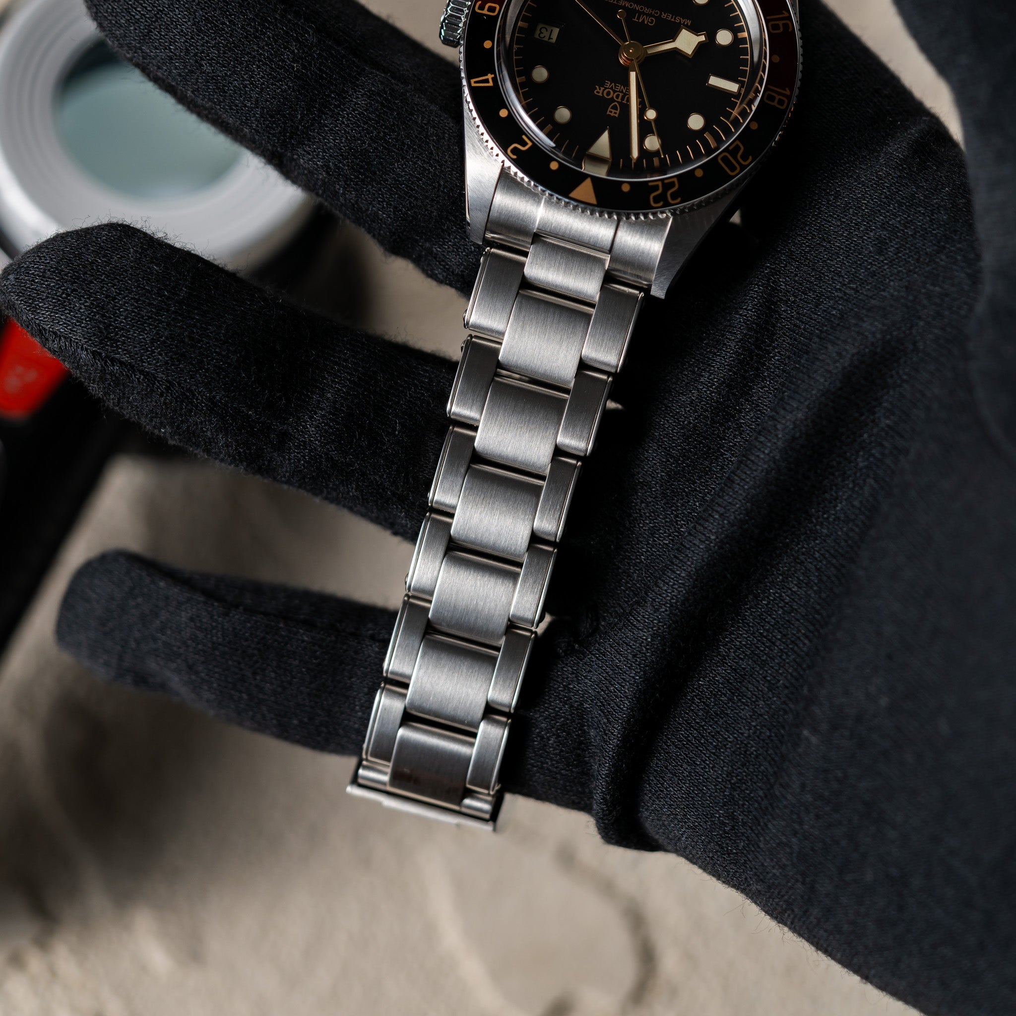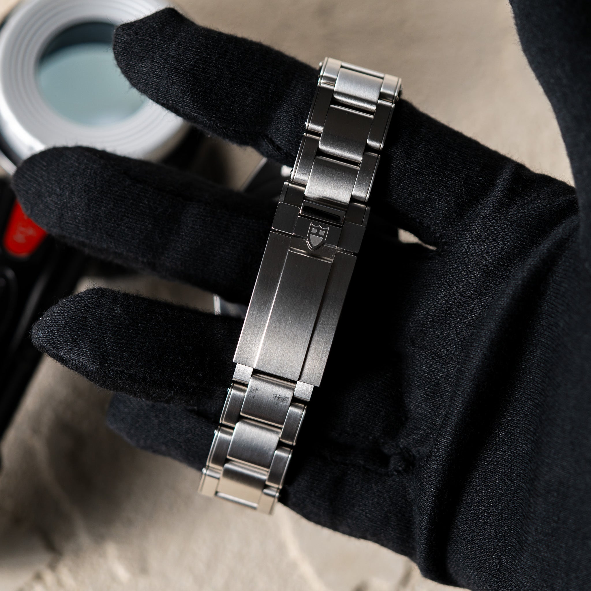 BRACELET: The steel bracelet is in mint condition. There are only a few hairline scratches. The convenient T-Fit clasp works perfectly.