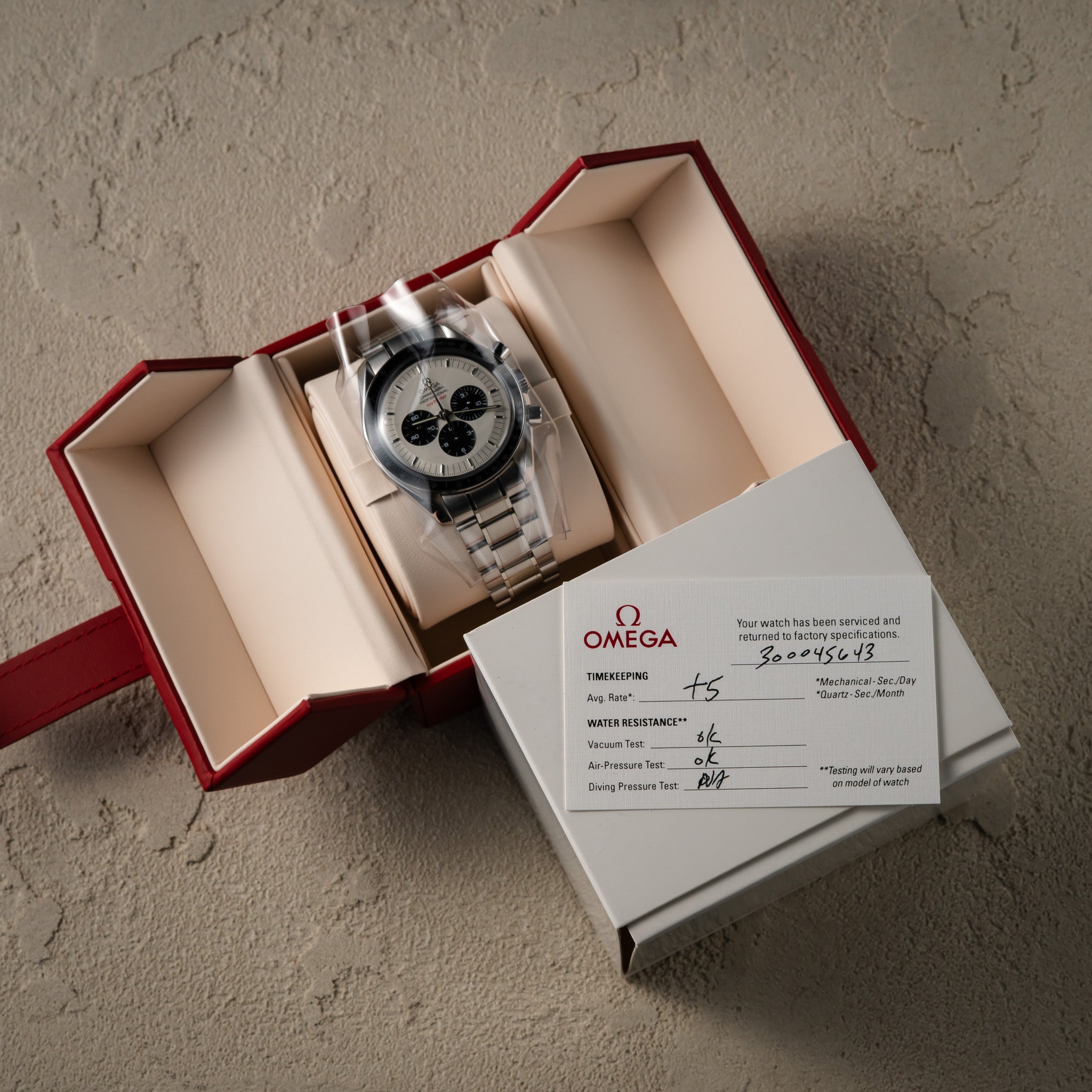 -DIAL: The Panda dial is in its original condition. Omega replaced the handset during service, and all original parts are included with the watch and can be reinstalled.