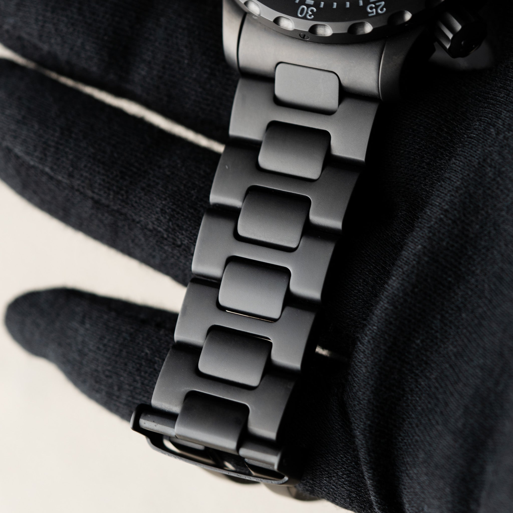 The case is in excellent condition, free from any scratches thanks to its TEGIMENT coating. Similarly, the TEGIMENT bracelet remains pristine, with the diving extension buckle functioning flawlessly. Both the TEGIMENT and Black Hard Coatings (PVD) exhibit no peeling, maintaining their original elegance. The sapphire crystal is flawless, offering a clear and unblemished view. Internally, the dial and handsets are immaculate, and the movement operates perfectly, ensuring all functions work seamlessly.