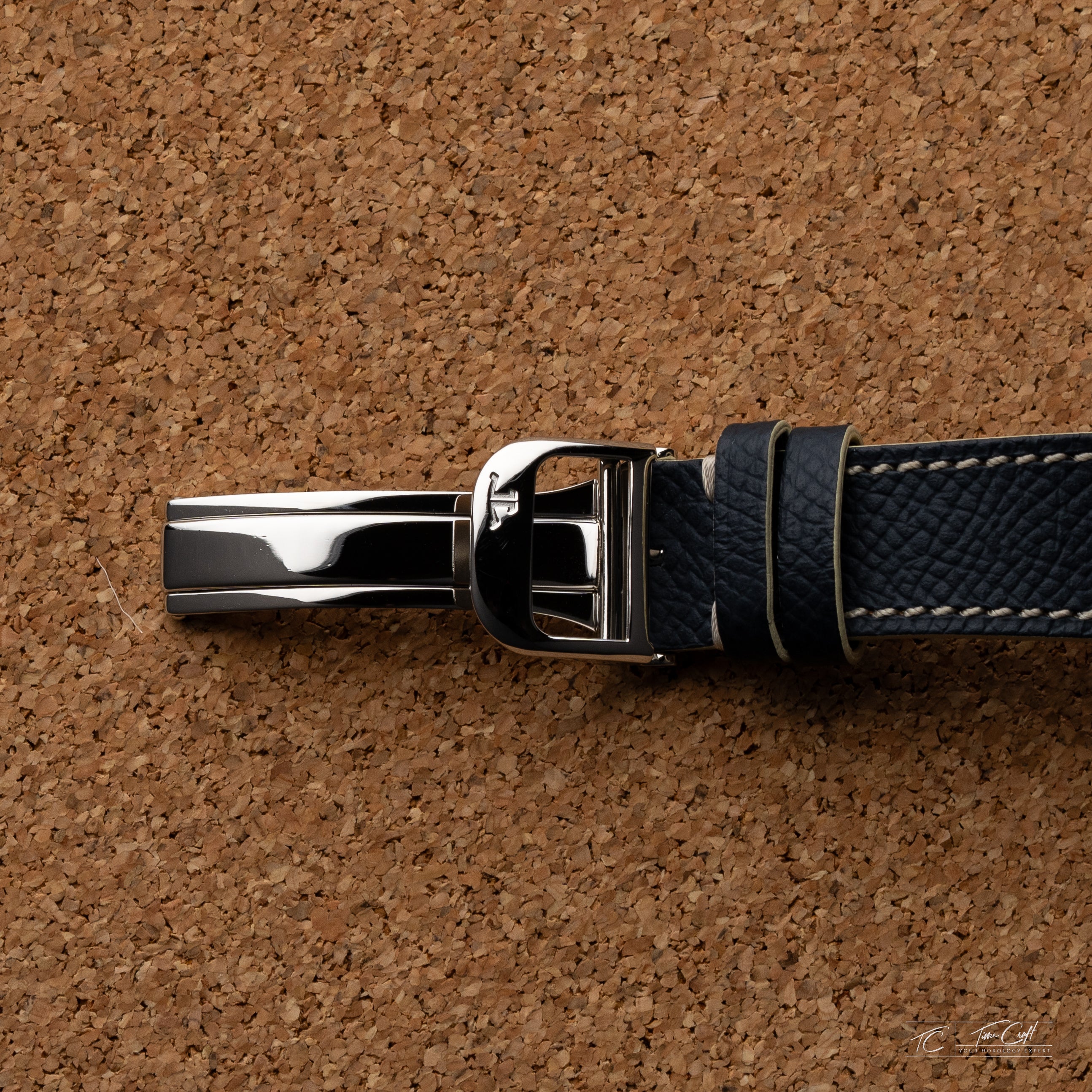 The Cal.823 movement has been meticulously hand-skeletonized and adorned with freehand engraving. On the other side, the watch boasts an exquisite dial with Hand-Written style hour markers, a Day/Night indicator, a golden Moonphase, and a Power Reserve Indicator. The watch is complete with a matching PT950 folding buckle.