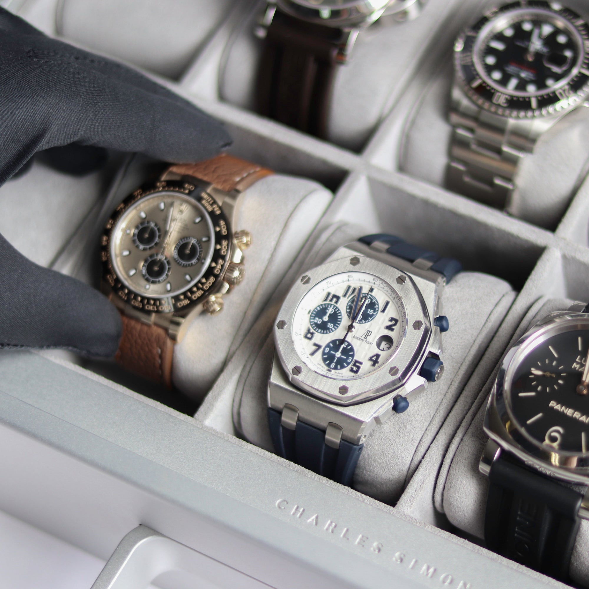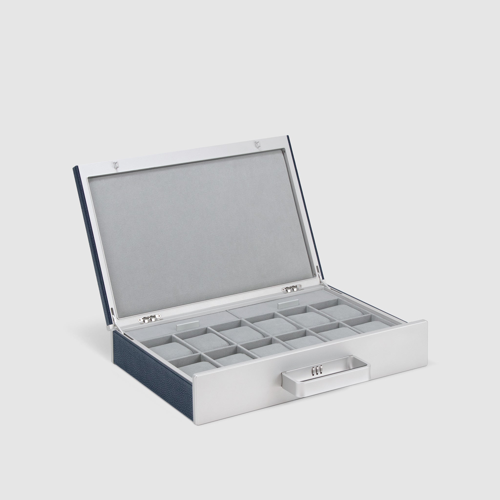 The Mackenzie 12 Watch briefcase is the refined way of keeping your watch collection. Made by hand in Canada, this watch briefcase holds up to twelve watches. A sturdy aluminum and carbon fiber frame and a protective lock with a personal code ensure that your watches are properly secured, while two convenient storage compartments provide additional room for storing your watch straps, gloves, and other accessories.