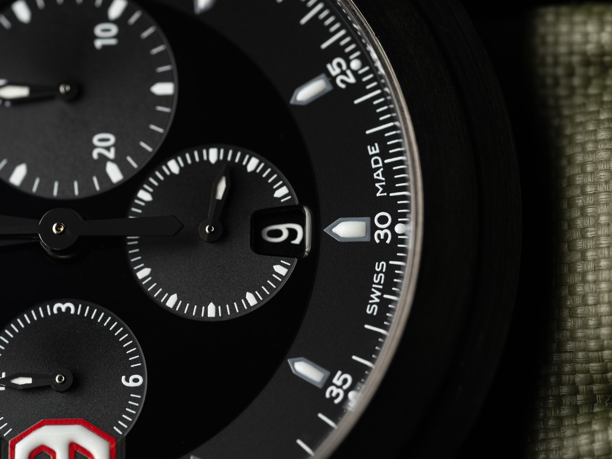-Strap: The OEM folding buckle is in excellent condition. The installed strap is an Artem Khaki canvas strap with a black Artem pin buckle. The OEM strap is included but not usable due to age.